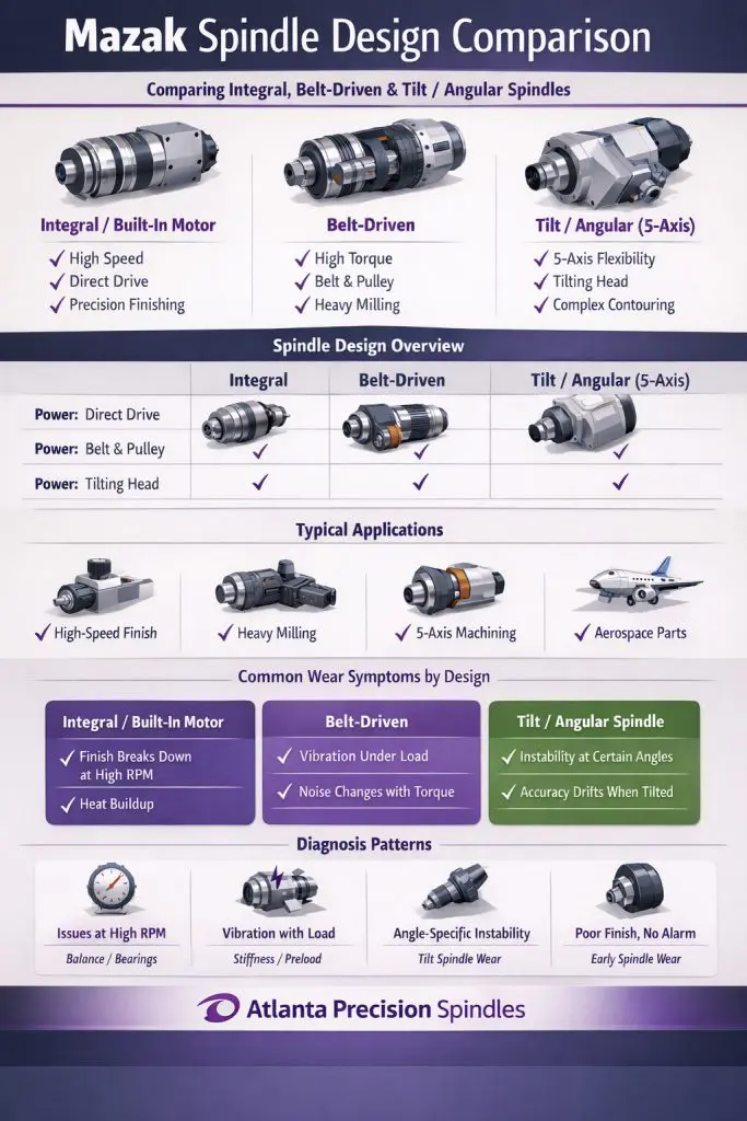 Comparing spindle designs by behavior and application makes it easier to identify when the spindle—not tooling or programming—is the root cause.