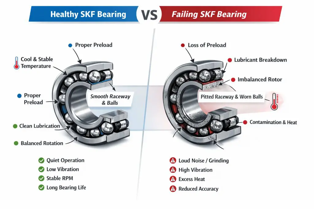 If your spindle uses SKF 719 or 70 series bearings, rebuild precision is critical.